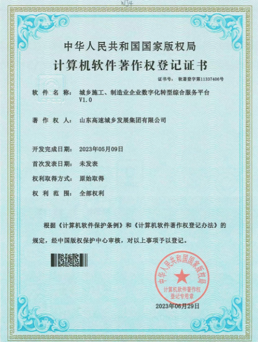 近日,由山东高速城乡发展集团自主研发的城乡施工、制造业企业数字化转型综合服务平台应用系统顺利通过中国版权保护中心审核,获得国家版权局颁发的计算机软件著作权登记证书。此次成功取得计算机软件著作权登记证书,标志着公司在推动城乡施工、制造业企业数字化转型综合服务信息化建设方面取得积极成效。